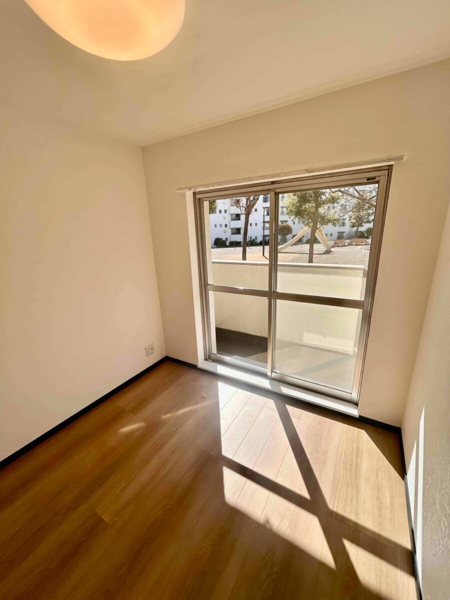 今回バス11分「左近山第二」停徒歩3分の立地の3街区30号棟の1階部分を新規にスケルトンリンベーションいたしました。建物は、南東向きの配列で敷地が広く棟との距離があるため採光や通風を確保しやすい配置となっています。