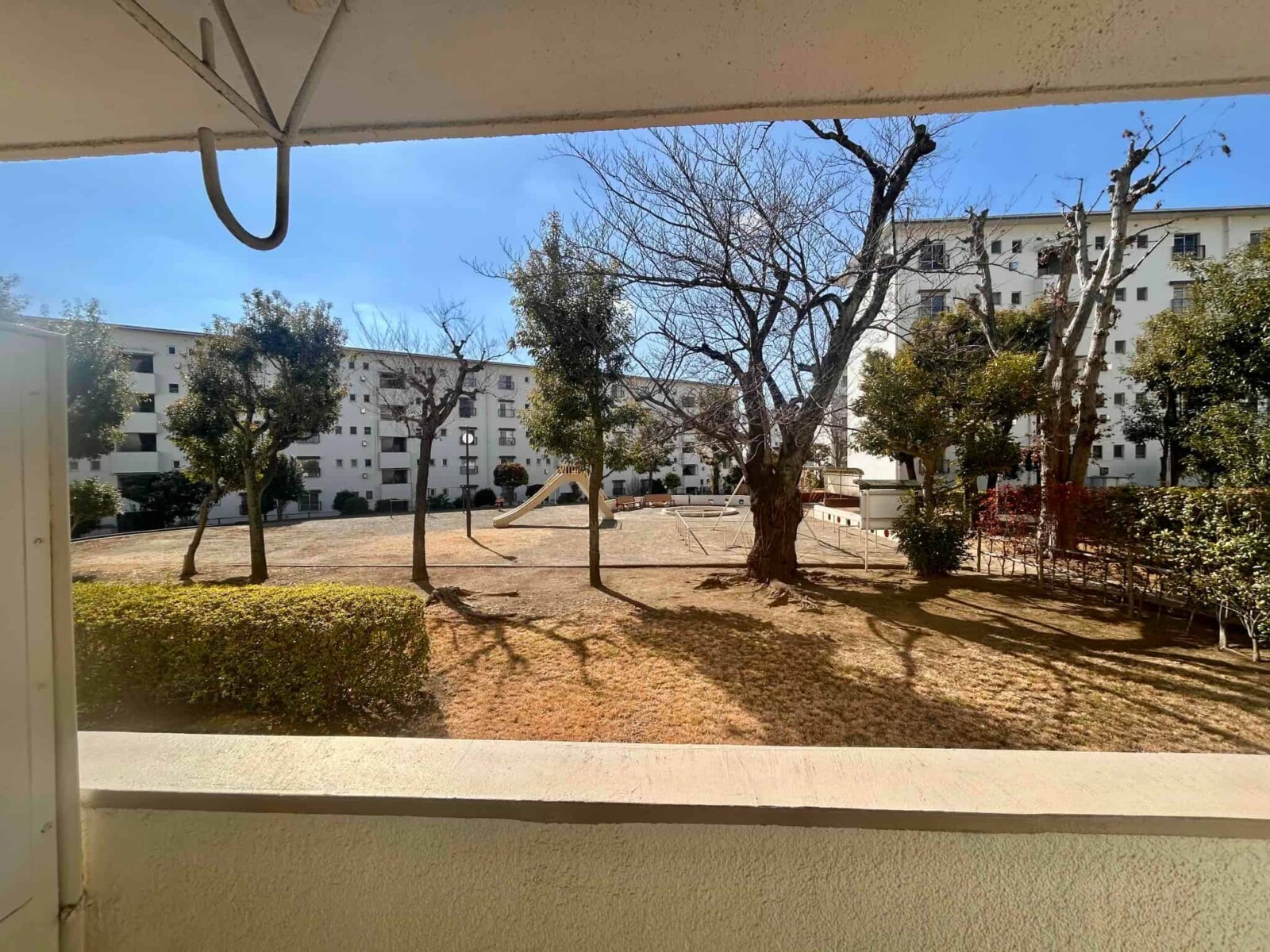 - バルコニーから公園を除く