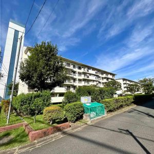 今回バス11分「左近山第二」停徒歩3分の立地の5街区9号棟の1階部分を新規にスケルトンリンベーションいたしました。建物は、南東向きの配列で敷地が広く棟との距離があるため採光や通風を確保しやすい配置となっています。